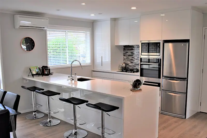 Cabinetry is built in our Auckland workshop and installed by our own team for consistency and quality control.